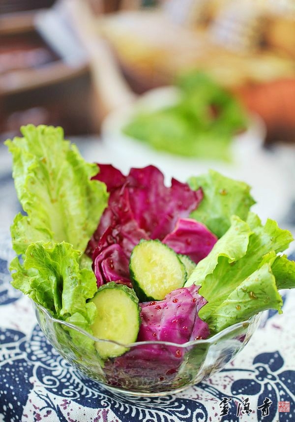 【原料】:生菜、紫甘蓝、黄瓜