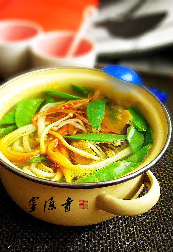 5、10分钟后加入荷兰豆,沸腾后加盐调味即可。