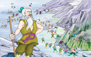 一位学人听说世上有一种"移山大法",于是他就决定要学这种大法。但他拜访了许多名师,都未能如愿,感到十分失望。一天,他去拜访一位大禅师, 把自己的苦恼向禅师诉说了一通。禅师听完他的诉苦,十分轻松地告诉他:"你不用到处跑了,在这里暂住一个时期,我可以教你‘移山大法’。"