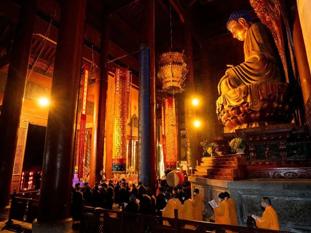 元代省悟法师所著《律苑事规》中说:“正旦元首,各寺祈祷规式不同,修光明、观音忏法,或诵经文,或只课咒。”又说:“正月旦、上元节,诸寺殿堂各修忏法,或供诸天。”《续释氏稽古略》中说,元文宗时,天台宗的慧光法师于每年元旦率众修金光忏。到了明末,弘赞律师更就简略的《金光明忏法》别撰《斋天科仪》,至今诸寺通行。灵隐寺也不例外,每年正月初九都会在凌晨寅时举行斋天,上供祈福。