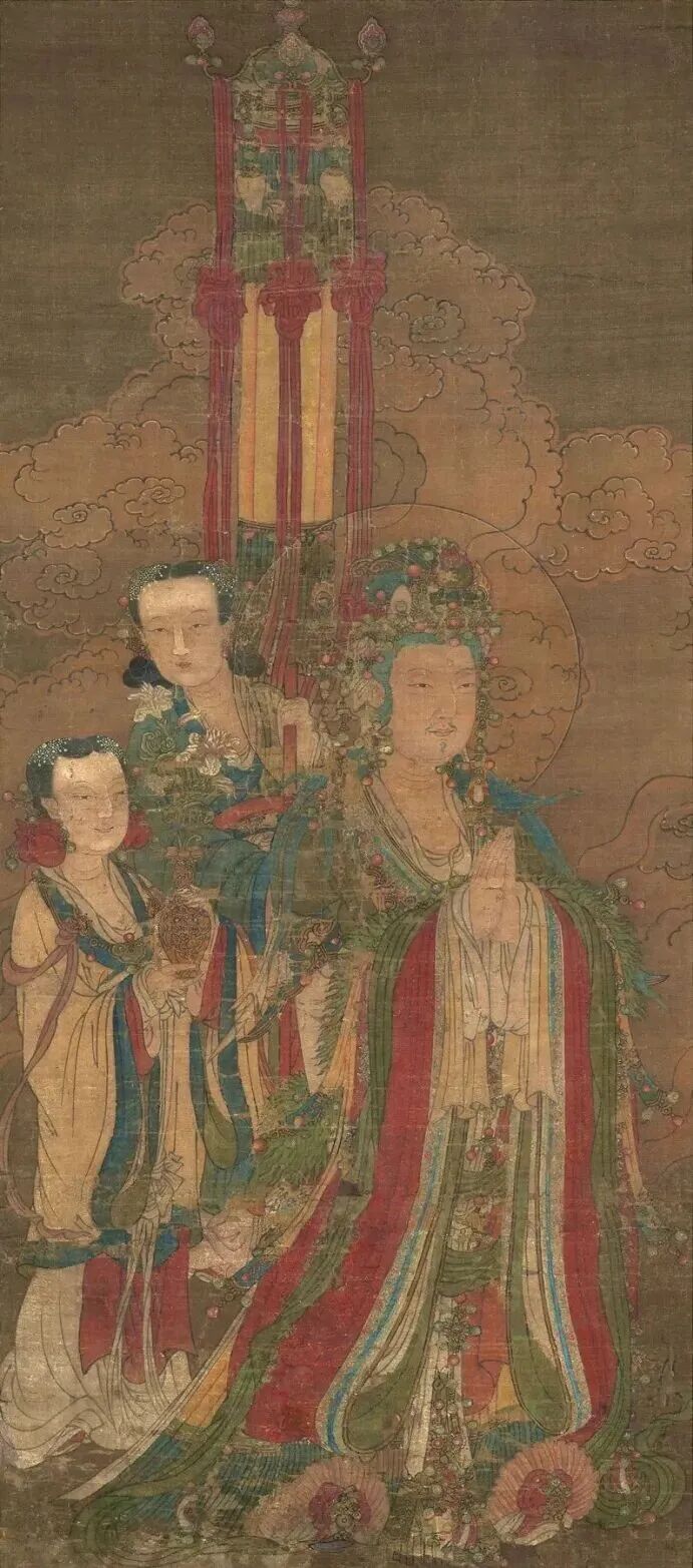 释尊升于忉利天为母说法时,帝释天手持宝盖,任佛陀之侍从;