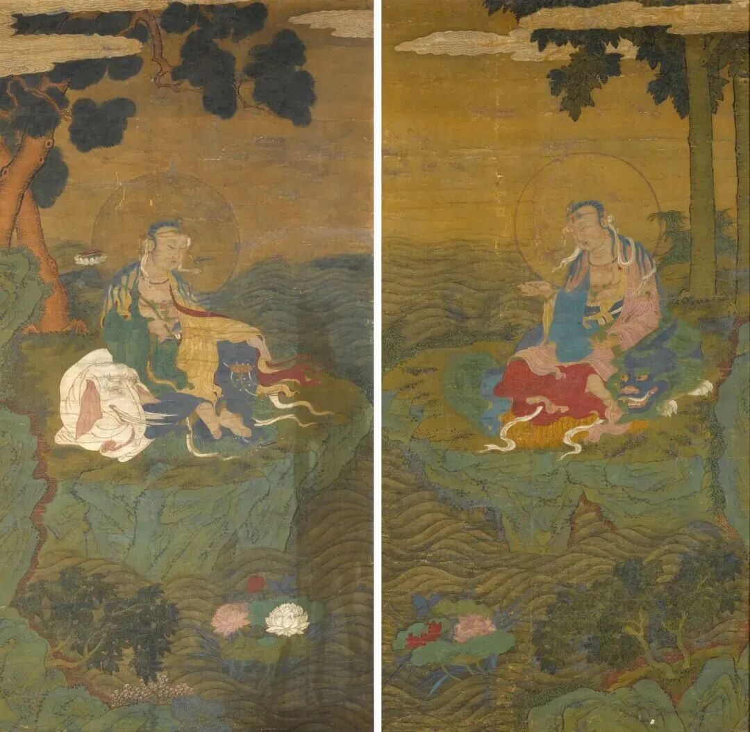 看过《西游记》中狮驼岭一段的人对于文殊菩萨以青狮为坐骑和普贤菩萨以白象为坐骑都不会陌生。抛开小说虚构的情节不谈,普贤菩萨坐骑形象确实是出自佛教经论,而且不是一般的象,是一头长着六根长牙的白色大象。如《佛说观普贤菩萨行法经》云:“普贤菩萨身量无边、音声无边、色像无边,欲来此国,入自在神通促身令小,阎浮提人三障重故。以智慧力化乘白象,其象六牙……”这一形象并非简单的装饰,而是佛教以象表法,六牙、白色,乃至大象体态,各有其明确义涵。