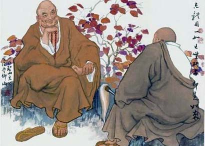 唐肃宗时,西天大耳三藏来到东土,自称有他心通,肃宗要慧忠国师加以试验。慧忠国师连问两次:"你说老僧此刻在什么地方?"大耳三藏都回答了,一说在四川,一说天津桥上。待国师再问第三次,大耳三藏技穷,默然以对。慧忠国师斥道:"这野狐精,他心通在何处?
