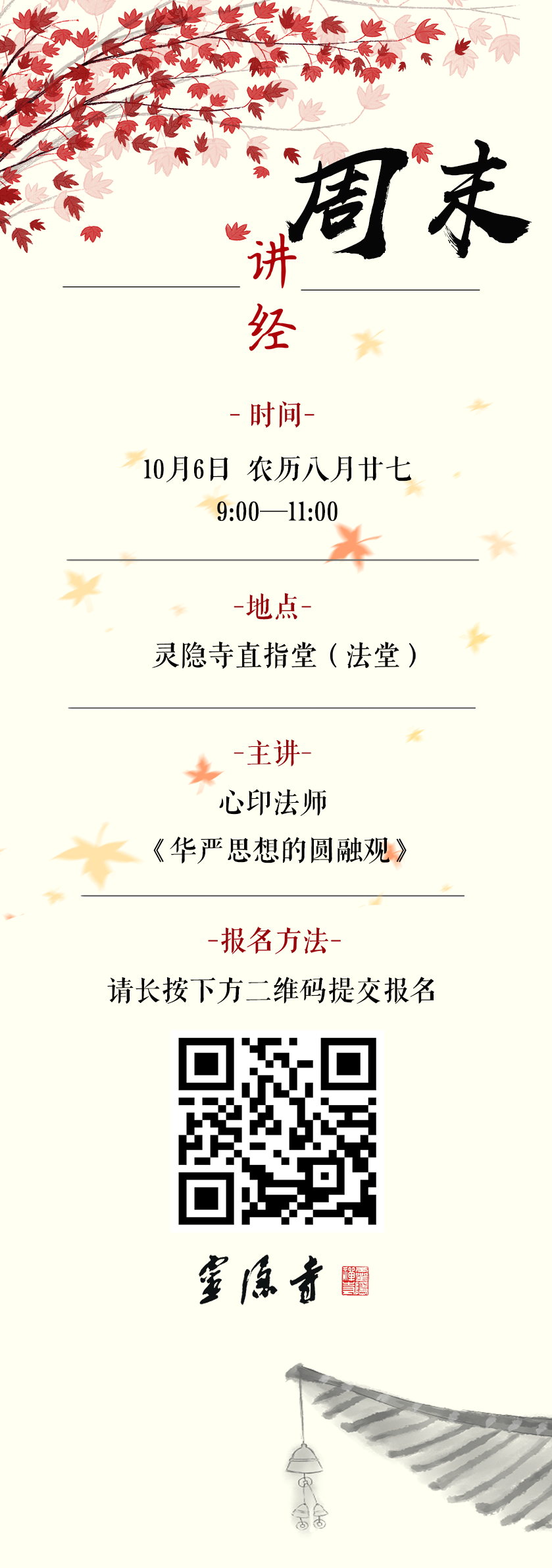 周末讲经课程是灵隐寺开展定期讲经活动的重要组成部分,旨在通过次第的学习,引领大众树立正知、正见,践行正信、正行,以法音为甘露,令当机众普沐教泽,和谐身心,精进修学。欢迎广大信众踊跃听闻正法,以恭敬心摄受心念,护持正法;以虔诚心精进参学,庄严净土;在周末放下万缘,以如理如法的威仪进入讲堂,安顿身心,共同成就灵隐寺周末讲经活动的庄严殊胜。