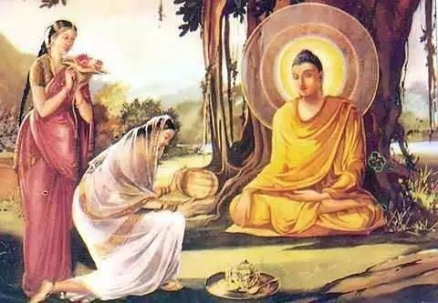 尼连河边有两名牧牛女子,一名难陀,一名波罗,素日里看见释迦牟尼如此虔诚苦修,心中甚是感动敬佩。这时见释迦牟尼已愿受愿,忙选择肥壮的母牛,入河洗浴干净,挤取乳汁,蒸成乳糜,盛了满碗,捧到他面前,礼拜奉献。