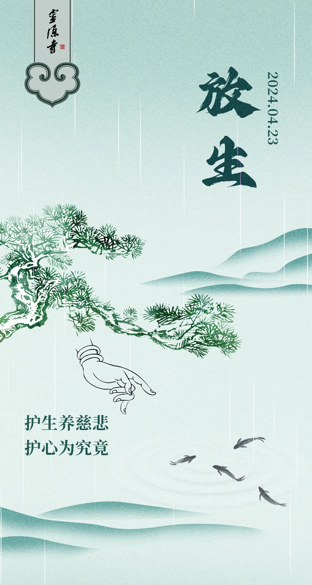 本次放生祈福法会将于2024年4月23日上午七时在杭州灵隐寺药师殿前举行,欢迎各位信众参加。