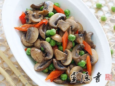 新鲜豌豆粒150克、口蘑150克、彩椒适量