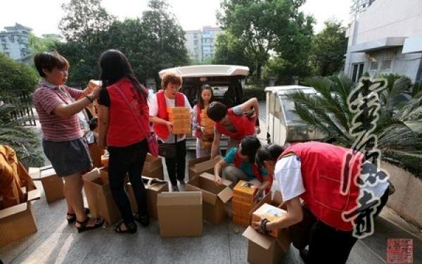 云林志工团的居士,把尿不湿、水果、零食运到浙江民政康复中心。