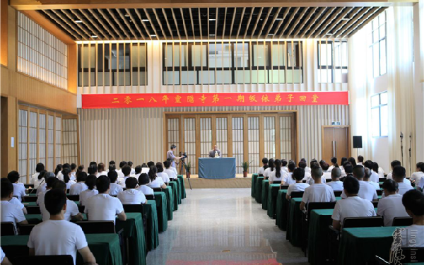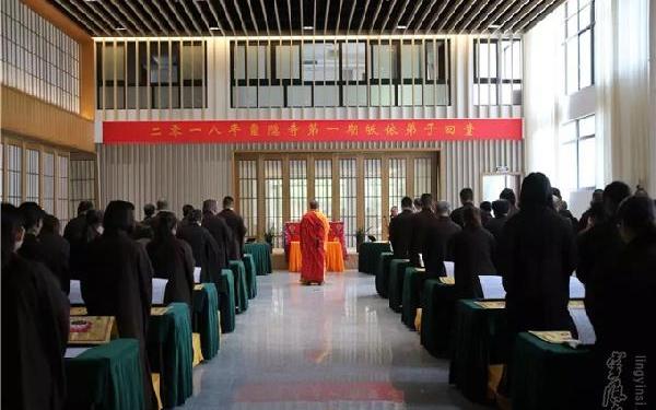 6月18日,适逢端午。杭州灵隐寺2018年第一期皈依居士回堂活动圆满。 四天以来,回堂活动,场场佛事,如法如律,威仪严整,庄严肃穆。皈依居士,身心清净、法喜充满。 皈依居士经过早殿晚课、供灯上香、三皈依、忏摩拜忏,八关斋戒、诵经礼佛等一系列佛事的沐浴,以及学习佛门礼仪、三皈依的学处和正受八关斋戒等法雨甘露的洗礼,在解脱的路上又迈近了一步。 佛法修行的核心目标是解脱。作为在家居士,如何把握佛法修学要领?6月18日上午,在回堂活动即将结束之际,天宝禅寺常住再次为学员安排授课。请隆增法师讲述"如何建立自己的修学系统"。 隆增法师从皈依、发心、戒律、正见、止观等五个
