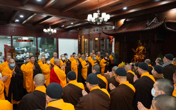 2月2日,癸卯年农历腊月廿三,适逢监斋菩萨圣诞,是日下午16:00,杭州灵隐寺两序大众云集十方苑,讽诵经咒,同声礼赞监斋菩萨。愿以此祝圣送灶功德,回向二时无乏,六味常盈;掌水火以平安,供佛僧而丰备!功司鼎鼐,职任粢盛;远承香积之风,永作云厨之主。佛教中的监斋菩萨,亦即大圣紧那罗王菩萨,也就是民间所谓灶神,主要负责监护佛教寺院道场僧众斋食、保护寺院道场平安,是佛教非常重要的护法善神。监斋菩萨圣诞的农历腊月二十三日,在中国传统习俗中也被称为“小年”,是民间祭灶扫“尘”(陈)日子,也被称为谢灶、祭灶节、灶王节、祭灶。古时佛教寺院,有在斋堂绘制供奉灶神监斋菩萨的传统,而监斋菩萨能在民间演化成灶王爷,成