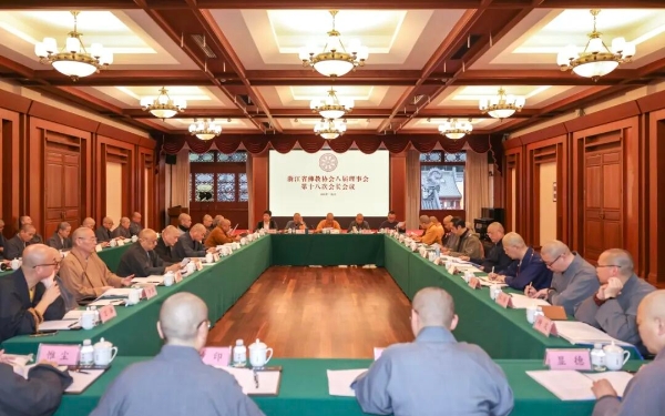 10月31日下午,浙江省佛教协会八届十八次会长会议暨浙江佛教界开展“学法规、守戒律、重修为、树形象”教育活动部署会在杭州灵隐寺召开。浙江省民宗委宗教一处处长楼剑涛、浙江省委统战部民宗处副处长沈浙莅会指导。浙江省佛教协会名誉会长道慈法师、怡藏法师,会长光泉法师,副会长惟航、允观、可祥、诚信、智明、信光、达照、贤宗、显宝、慈满法师,秘书长黄年华参加会议。会议由光泉法师主持。会议专题学习了党的二十届四中全会精神和习近平总书记在二十届中央政治局第二十二次集体学习时的重要讲话精神,传达学习了全国性宗教团体联席会议第三十二次、第三十三次会议精神和省宗教团体负责人联席会议精神,研究讨论了《关于在浙江省佛教界