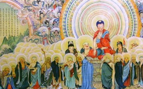《佛说阿弥陀经》姚秦三藏法师鸠摩罗什译 如是我闻,一时佛在舍卫国祇树给孤独园,与大比丘僧千二百五十人俱,皆是大阿罗汉,众所知识:长老舍利弗、摩诃目犍连、摩诃迦叶、摩诃迦旃延、摩诃俱絺罗、离婆多、周利盘陀伽、难陀、阿难陀、罗睺罗、憍梵波提、宾头卢颇罗堕、迦留陀夷、摩诃劫宾那、薄拘罗、阿㝹楼驮,如是等诸大弟子,并诸菩萨摩诃萨:文殊师利法王子、阿逸多菩萨、乾陀诃提菩萨、常精进菩萨,与如是等诸大菩萨,及释提桓因等,无量诸天大众俱。 尔时,佛告长老舍利弗:从是西方,过十万亿佛土,有世界名曰极乐。其土有佛,号阿弥陀,今现在说法。 舍利弗,彼土何故名为极乐?其国众生,无有众苦,但受诸乐,故名极乐。又舍