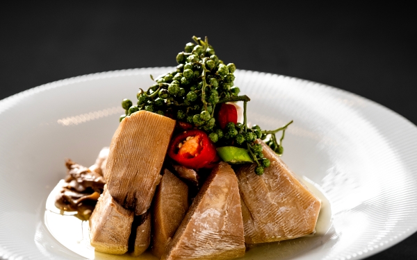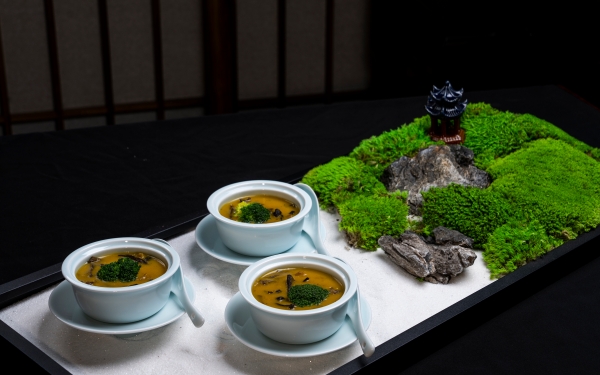 灵隐清供灵鹫福寿全福表示福德、幸福,寿则意味着安康、长寿,福寿双全则是幸福与长寿二者兼得,表达了人们对于美好生活的向往。逢年过节,祝愿亲朋好友,都能拥有美满的家庭、安康的生活、长寿的人生,可以说,“福寿全”几个字里饱含了我们对于他人的衷心祝福。“灵鹫福寿全”,这道菜的主要食材是干牛肝菌、干姬松茸、干鹿茸菇、干猴头菇,这几种菌菇不仅营养丰富,而且香味浓郁,美味可口,就让我们借着这道菜,将福寿双全的美好祝愿送给周围人吧。灵鹫福寿全原料:西蓝花、金瓜、干牛肝菌、干姬松茸、干鹿茸菇、干猴头菇、笋干等。基本做法:将干牛肝菌、干姬松茸、干猴头菇、干鹿茸菇清洗泡发。金瓜蒸熟加少许水打成浓汁。西蓝花焯水备用。