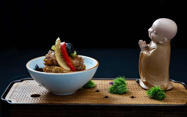 禅林春晓(香椿芽炒豆腐)是江南一带传统的美食,其独特的清香美味颇受人们的青睐。香椿富含多种维生素、胡萝卜素等,有助于增强机体的免疫功能。而豆腐富含优质蛋白质和大豆异黄酮,对身体发育和代谢都有重要的作用。关于香椿与豆腐的搭配,民间还有这样一则故事。相传,清朝乾隆年间的一次春荒,皇帝下江南路经淮南寿春,着便服私游寿春城南,遇大雨而被困在一家小酒馆内。当时店内没有客人,皇帝又冷又饿,要求主人弄些热汤热饭吃。这家店的主人,因春荒,没什么可口饭菜,只得将剩下的两块豆腐拿出,正好门前香椿冒出些嫩芽,就随手采些香椿做了一道香椿芽拌豆腐。乾隆回到宫中,对香椿芽拌豆腐念念不忘,要求御膳房也来做这道菜,可是无论御