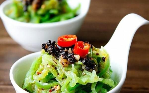 苦瓜适量、青椒适量、豆豉适量、盐适量、蘑菇精适量、香油适量、白糖适量、辣椒油适量