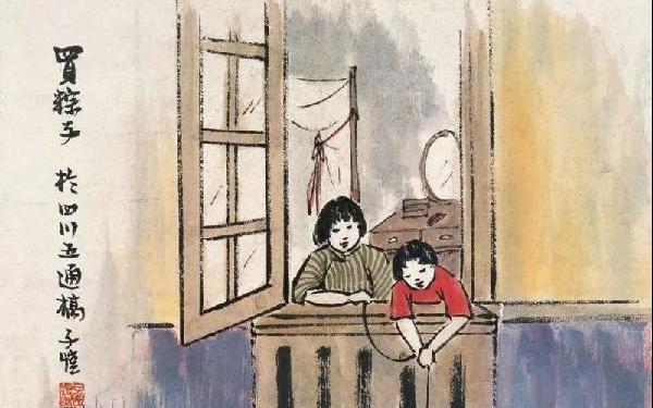 我写民间生活的漫画中,门上往往有一个王字。读者都不解其意,有的以为这门里的人家姓王。我在重庆的画展中,有人重订一幅这类的画,特别关照会场司订件的人,说:“请他画时在门上写一个李字,因为我姓李。”这买画人把画当作自己家里看,其欣赏态度可谓特殊之极!而我在门上写王字,也可说是悖事之至!因为这门上的王字原是端午日正午用雄黄酒写上的。我幼时看见我乡家家户户如此,所以我画如此。岂知这办法只限于某一地带,又只限于我幼时,现在大家懒得行古之道了。许多读者不懂这王字的意思,也挺难怪的。我幼时,即四十余年前,我乡端午节过得很隆重:我的大姐一月前制“老虎头”,预备这一天给自家及亲戚家的儿童佩带。染坊店里的伙计祁官