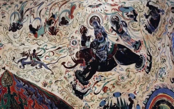 看过《西游记》中狮驼岭一段的人对于文殊菩萨以青狮为坐骑和普贤菩萨以白象为坐骑都不会陌生。抛开小说虚构的情节不谈,普贤菩萨坐骑形象确实是出自佛教经论,而且不是一般的象,是一头长着六根长牙的白色大象。如《佛说观普贤菩萨行法经》云:“普贤菩萨身量无边、音声无边、色像无边,欲来此国,入自在神通促身令小,阎浮提人三障重故。以智慧力化乘白象,其象六牙……”这一形象并非简单的装饰,而是佛教以象表法,六牙、白色,乃至大象体态,各有其明确义涵。六牙最主要的含义是六度(即六波罗蜜),是大乘菩萨修行的六种根本方法:布施、持戒、忍辱、精进、禅定、智慧。六牙的锐利,象征着这六种法门能像象牙一样破除一切烦恼障碍,度脱众生