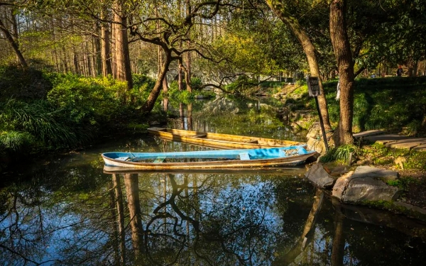 几度西湖独上船【宋】道济禅师几度西湖独上船,篙师识我不论钱。一声啼鸟破幽寂,正是山横落照边。多么洒脱豁达的大颠禅师!兴之所至,独自畅游西湖。“篙师识我不论钱”,篙师自然认识这颠僧,没有向他问价计钱。从理上讲,众生与万物皆是吾人自心中所现,万法唯识,万境唯心,无有一外物而出自心外。故度人者即是度己,度己即是度人,我成佛,即是众生成佛,众生成佛,我方成佛。《金刚经》指出,所有一切众生之类,我皆令入无余涅槃而灭度之,如是灭度无量无数无边众生,实无众生得灭度者。以众生心性,当体即是无余涅槃。“一声啼鸟破幽寂,正是山横落照边”,后两句即景会心,直指向上真如,描不可思议之现量境。何谓现量?《因明入正理论疏