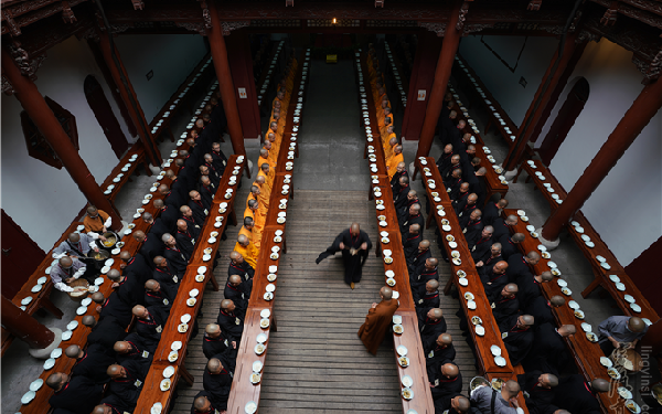 唐代道宣律师因持戒严谨而感天人送食,曾问天神:"人间作何功德最大?"天神答:"斋僧功德最大!" "斋僧"即是设食供养僧众。佛陀时代,比丘们著衣持钵,入城次第乞食。一方面通过乞食降伏骄慢,专心修道;另一方面籍由乞食与居士结下善缘,给予布施种福田、说法的机会。 《佛说盂兰盆经》中神通第一之目犍连尊者观见母亲死后堕饿鬼道,日夜苦无饮食。尊者为拯救其母向佛陀请示解救之法。佛陀指示目犍连于七月十五日僧自恣日,以百味饮食置于盆中供养十方诸佛僧众,以此殊胜广大功德,救拔其母脱离饿鬼道,七世父母皆得解脱。这就是后世盛行此日以饭