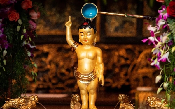 天上天下无如佛,十方世界亦无比。世间所有我尽见,一切无有如佛者。恭闻法身现相,祥光霭净饭之宫;化佛应真,瑞气拥迦维之国。金躯生处,便能一手指天;宝体浴时,遂感九龙吐水。四方遍顾,七步成莲,称上下之独尊,受人天之交赞。不恋王宫富贵,直趣雪岭修行,十九学道出家,三十降魔成佛。演经至五千余卷,住世于八十多年,开三乘方便之门,导七趣菩提之路。癸卯年农历四月初八(2023年5月26日),恭遇本师释迦牟尼佛圣诞,杭州灵隐寺为感佛恩,隆重启建浴佛法会,冰洁道场,云臻梵侣,金盆高捧,喜观悉达太子之金容;圣水频倾,仰见摩耶夫人之圣德。伏愿扇慈风于末世,揭慧日于中天,百亿山河,全彰法王妙相;大千刹海,灌沐我佛金身