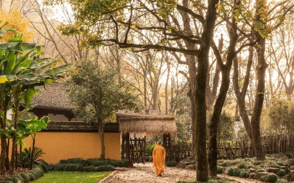 唐代南阳慧忠国师,浙江诸暨人,俗姓冉。自小不爱与人谈笑,平日连家门前的小桥也未曾去过。然而十六岁那年,他望见桥外有僧人经过,忽然快步追过桥去,向僧人礼拜,寒暄问候起来。家中亲眷及左邻右舍见到这一幕,皆甚感惊讶,觉得此儿与寻常人不同。师子儿 岭南行从僧人那儿,年少的慧忠禅师听闻六祖大师在曹溪弘法,虽然不知往岭南的路要如何行去,他毅然赶往曹溪参礼六祖。初见六祖大师时,大师问他:“你从什么地方来?”对曰:“只近。”祖又问:“你的生缘在什么地方?”师答:“自受五蕴之身后,就记不得了。”慧忠禅师敏而好学,善根具足,随六祖惠能大师出家后,传承法脉心印。住南阳晦迹韬名用功四十余载,足不出山。有时随缘安居青松