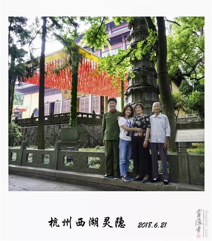 一次偶然的机会,我在父母的相册里翻到了一张珍藏很久、黑白泛黄的照片。这张照片是七十年代初在杭州灵隐寺拍的。照片里的我才5个月大,被抱在怀里。外婆和父母是那么的年轻。得此照片,我如获至宝。之后,我一直有个心愿,希望能有机会带他们去灵隐寺故地重游。