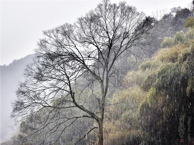 它一点儿不像是我住的城市的雨,如此的舒缓平和,倒像是散落在江南葱茏烟水间的那一脉的凝雾,一脉的浓悠。这化解不开的凝雾,在我窗外的花间优柔,花儿昂着头任其纵情地淌过它们娇美的面颊。此刻的雨也仿佛是重新滴落在了我十二年前的记忆里,杭州云林那场飞来峰上的雨。