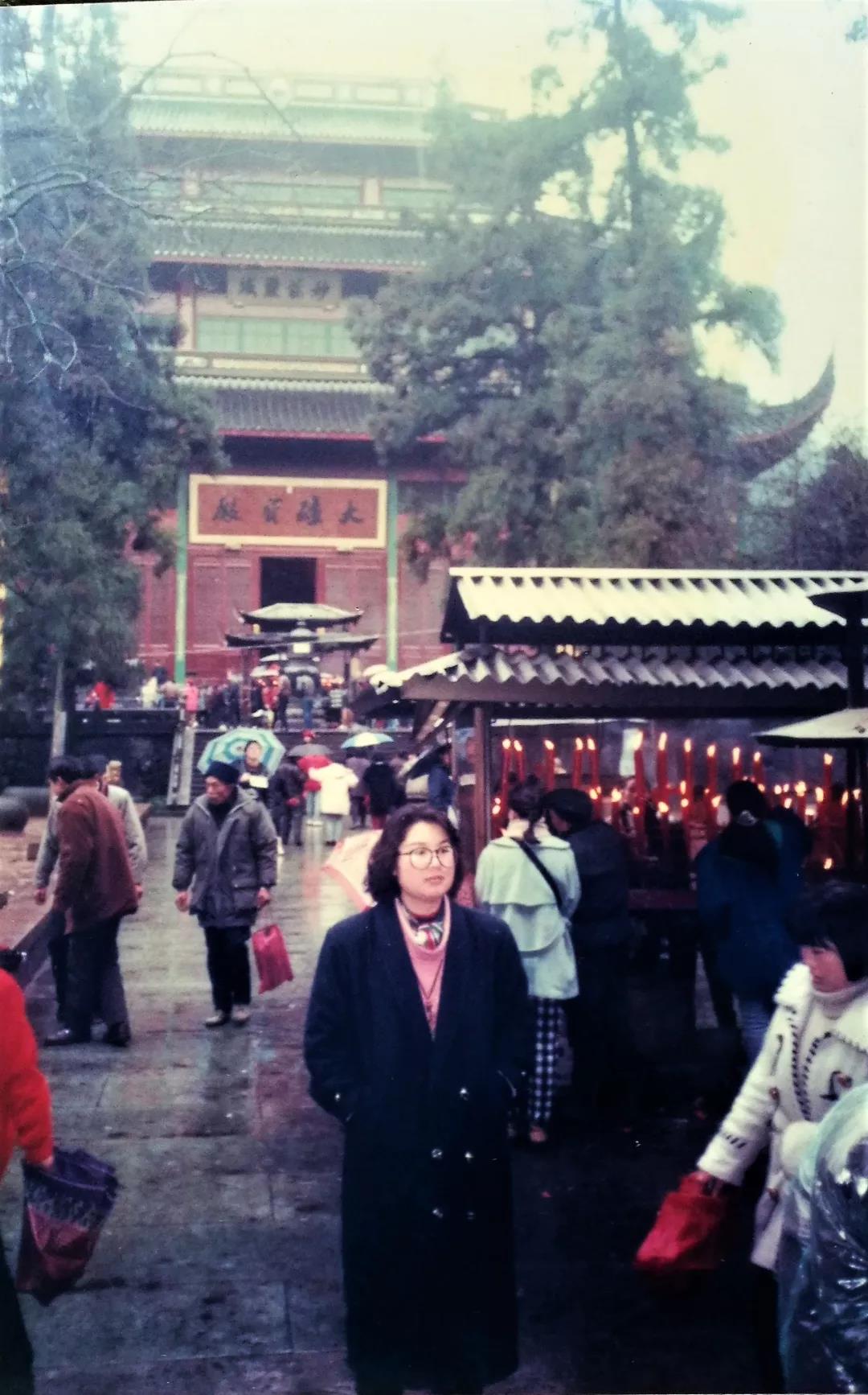 照片说明:1992年12月冬天摄于杭州灵隐寺。从安徽坐火车到杭州,下了火车,坐车直奔灵隐寺。那时候的咫尺西天还是红墙。灵隐景区门口是停车场。