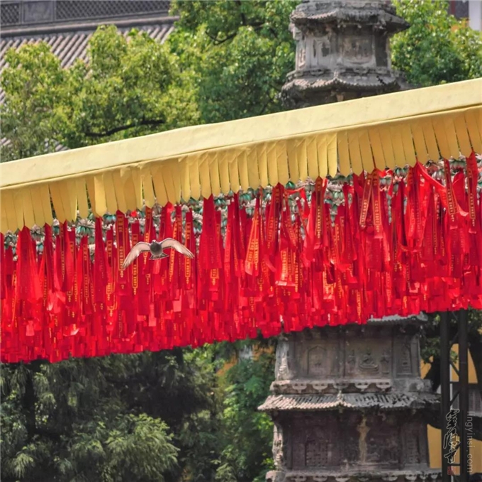 在大雄宝殿前面,或许你可以看到许多红红的祈愿条,迎着微风起舞,很是漂亮。每一根祈愿条,都诉说着一个故事,诉说了某个人的心愿。
