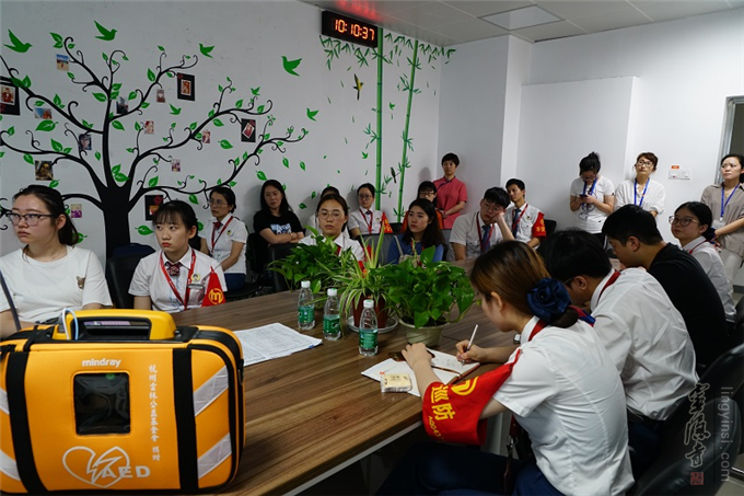 2018年6月7日、8日上午,杭州云林公益基金会、杭州市急救中心携手杭州地铁运营分公司,在地铁2号线钱江世纪城站会议室开展了"生命课堂"活动,对地铁站工作人员进行AED/CPR及相关急救技能的实践培训。