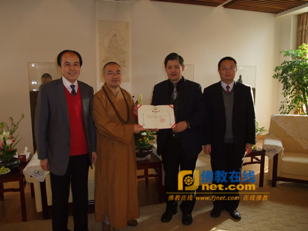 2011年11月24日,在"2011汉传佛教讲经交流会"期间,中国佛教协会王健秘书长会见了永福禅寺住持月真法师,对永福禅寺关心和支持中国佛教协会工作网站筹建表示感谢,并向月真法师颁发了捐赠证书。