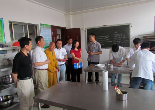 王在郑副局长和无相长老视察了宿豫区特殊教育学校的聋哑听力检测室、聋哑职高烹饪训练基地、智障康复中心,观看了残疾学生书画成果展和汇报演出,听取了学校的工作汇报,共同研究了帮扶项目。王在郑充分肯定了特教学校的教育成果,鼓励特教工作者努力培养残疾学生的自理能力、适应社会和服务社会的能力,让残疾学生切实体会到社会的温暖。无相长老表示,残疾孩子同样是祖国的花朵,理应受到社会各界呵护和关爱,佛教界应该发扬无缘大慈、同体大悲的精神,拉一下、扶一把,使孩子们感受到来自佛教界、来自全社会的温暖和关怀。近期,祥符寺将资助20万元用于学校聋哑职高烹饪训练基地和学生盥洗室建设,今后还将持续帮扶,用善举温暖残疾孩子的童年。