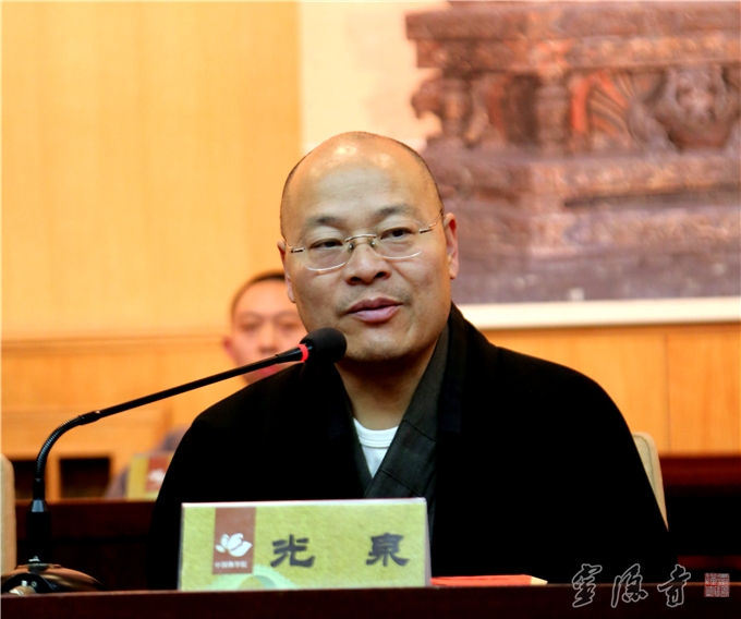 光泉法师代表杭州云林公益基金会向中国佛学院获奖学僧代表妙戒法师颁奖。他在给现场学僧们的开示中说,相对于我国14亿人口,中国佛学院每年毕业的僧才还是太少,再加上其他宗教的迅猛发展,佛教更应该意识到我们讲经说法人才的匮乏;他还说,网络技术的发展为弘法提供了新的途径,但网络也是一把双刃剑,关于佛教的负面信息也更容易传播,极大地影响着佛教的形象,扭转这种局面需要僧才,希望大家努力学修,毕业后住持一方,荷担起弘法的重任。