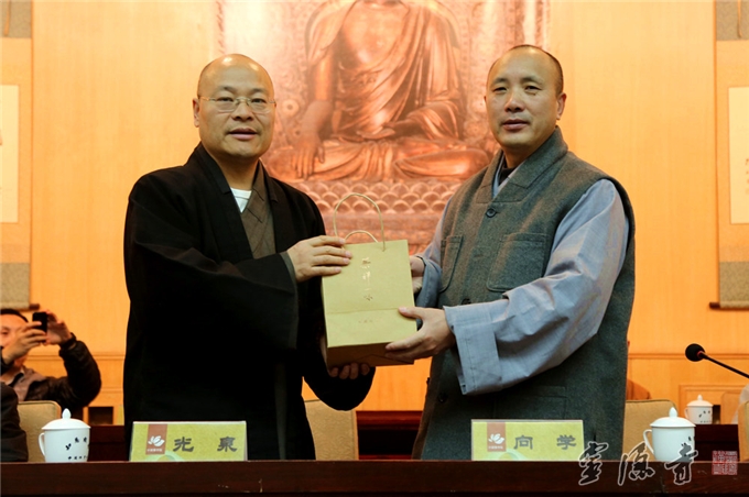 中国佛学院副院长向学法师还向光泉法师赠送了礼品。最后,颁奖仪式在庄严的《三宝歌》声中圆满结束。