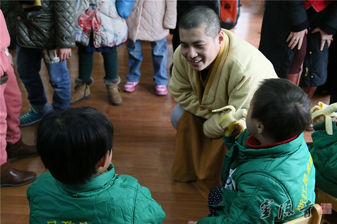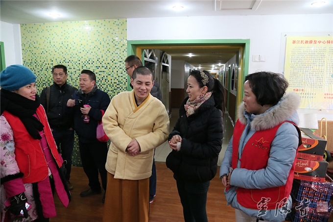 2014年12月21日,灵隐寺"寒冬送温暖"小队在杭州云林公益基金会两位法师带领下,为浙江康复中心的孩子们送去了棉衣、香蕉、蜡笔、小画板,不但温暖着孩子们的身体,还温暖了孩子们的心。
