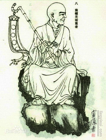 施,布施;幢,名驮缚若,又称计都,丝织之旗幡。置于佛前,藉以表麾群生,制服众魔;无垢,指清净而无垢染。施幢无垢尊者,稽诸史实,实无其人。
