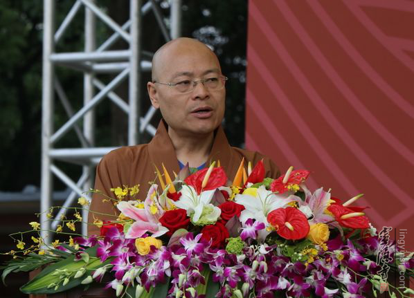 光泉法师在奠基仪式上致辞,他讲到,杭州佛教事业健康发展,凝聚了各级党委、各级领导、社会各界、诸位大德关心和支持。杭城佛教,始自东晋,兴于五代,盛于南宋。杭州的径山、灵隐等佛寺均名列佛教禅、教、律三宗"五山十刹"前列,杭州也久有"东南佛国"的美誉。潮音禅院这座由国际著名建筑师设计的新颖建筑,体现出了杭州城古典与现代为一体的城市特色,它的建设,将为杭州城东地区的广大民众提供一个心灵的栖息之地,为广大信众提供一个殊胜的共修清凉之所,也为新"东南佛国"增加了一处可圈可点的盛景。同时,光泉大和尚希望大家能够一如既往关心、支持杭州潮音禅院的建设,使杭州潮音禅院能够继续坚持佛教中国化方向,在引导信众爱国爱教、弘扬中华传统文化、促进社会和谐稳定等方面做出更大贡献,早日成为杭城名刹,成为我市佛教文化教育培训、对外交流、礼佛观光的一个新亮点!
