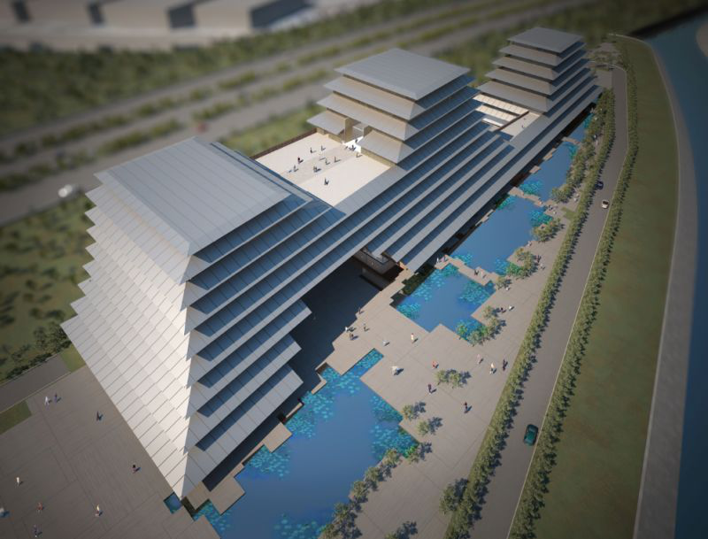 钱塘江水,悠悠千年。相传东南佛国的缔造者,吴越王钱弘俶为保一方平安,带领弓箭手逼退钱塘江潮,钱王射潮的故事代代相传。如今,潮水退散,崛起一片新城,孕育着未来的潮音禅院——一座极具创意,融合传统与现代的的新型佛教寺院。