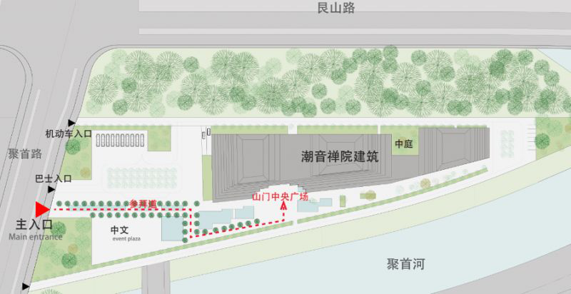 潮音禅院预计于2022年正式竣工。佛教综合体的定位,功能丰富,内设佛殿、法堂(剧院)、藏经阁(图书馆)、美术馆、禅堂、素食馆、茶室等。将致力打造以佛教文化体验、传统文化培训、禅修养生、国际交流为一体的现代化综合性寺院。建成后的潮音禅院必将成为中国佛教现代建筑的典范,在国际上都会产生影响,为东南佛国的杭州,再添一道亮丽新颖的风景线。
