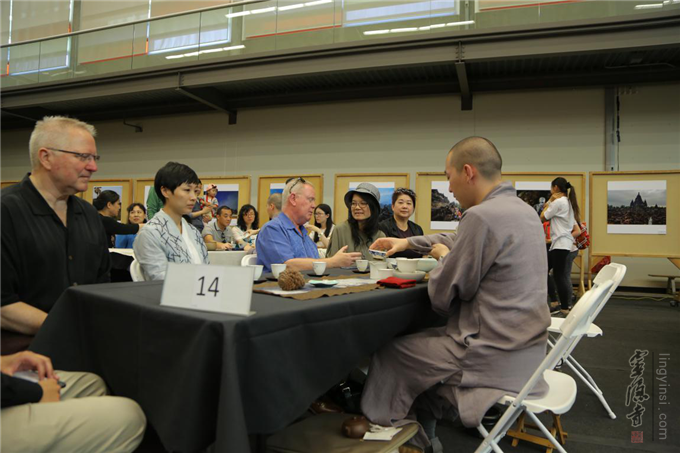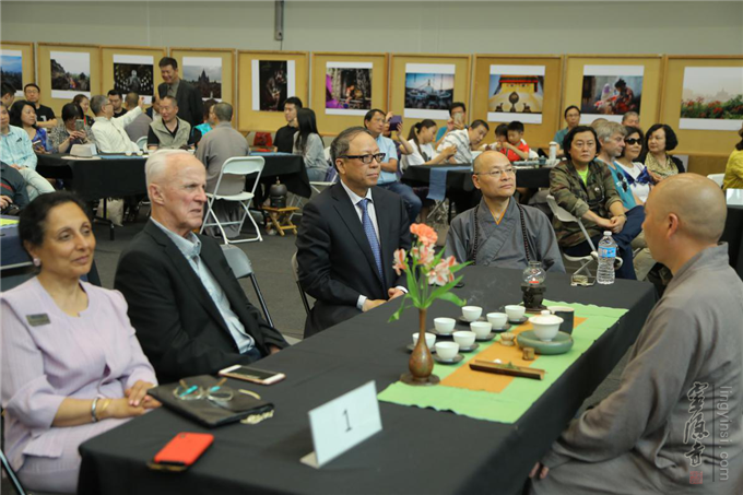 茶会上,中国驻温哥华副总领事孔玮玮首先发言,热烈欢迎来自祖国僧团为大家带来旨在弘扬中华传统文化的"云林茶会",盛赞了"一带一路"佛教文化图片展的艺术高度。不列颠哥伦比亚省议员、儿童发展厅厅长陈苇蓁、本拿比市代市长Paul McDonell和本拿比市议员王白进都表示本次活动将对丰富当地多元文化、促进中加友谊产生积极的作用。灵隐寺方丈光泉大和尚则在讲话中对在温哥华的华侨们表达了诚挚问候,鼓励大家本着佛教的慈悲、包容、感恩精神融入当地社会,同时不忘从自己的家庭里做起,承担起在异国传承中华优秀传统文化的责任。