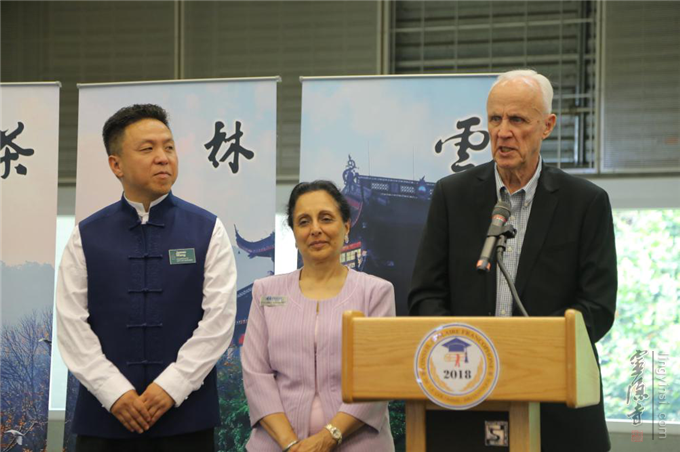 当地时间6月24日下午,由中国杭州灵隐寺主办的"一带一路"佛教文化图片展和云林茶会在温哥华著名学府Simon Fraser University开幕。 此次活动是应加拿大本拿比市市长Derek R Corrigan先生和温哥华杭州同乡会的共同邀请而举办,是当地2018中加旅游年活动之一。