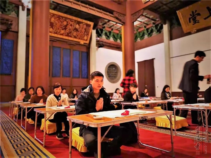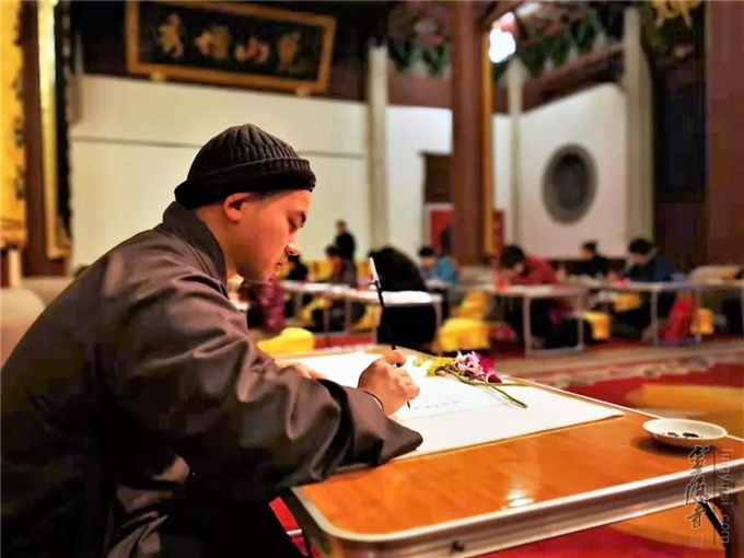 2019年3月16日(农历二月初十)晚上,杭州灵隐寺己亥新春首次抄经共修在直指堂举行,来自各地的40多云林志工,用抄经来平静生活的浮躁,用共修来豁达自己的心胸。