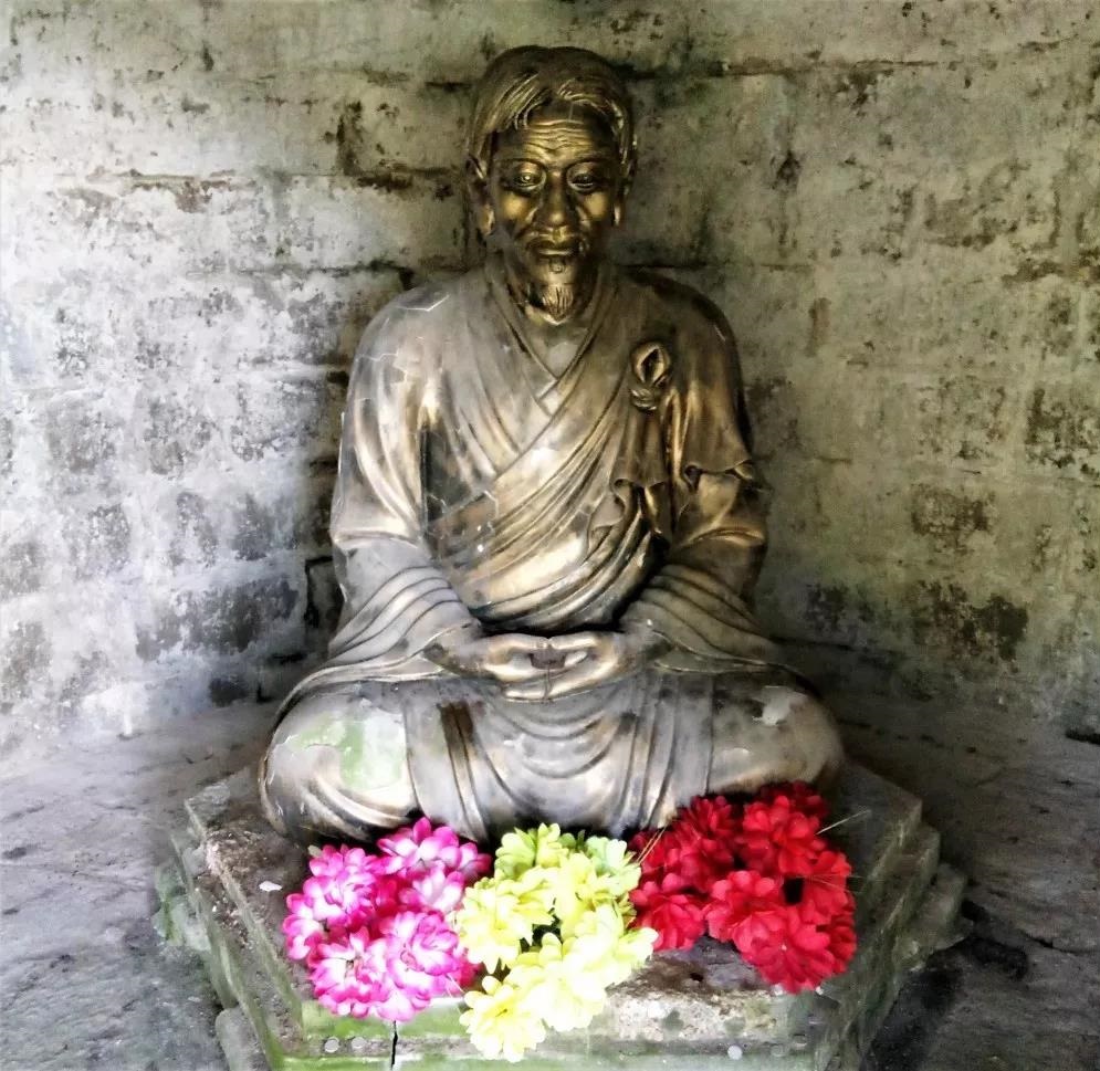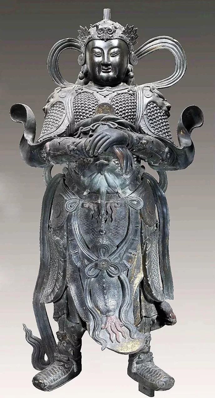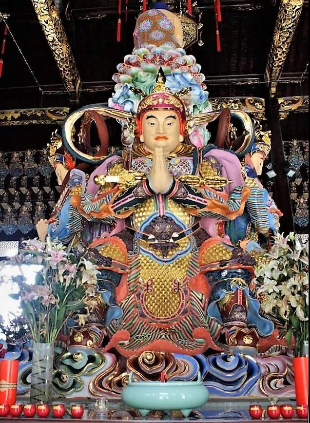 一般韦驮菩萨塑像都是立像,代表恭敬保护道场、保护修行人。韦驮菩萨 在浙江临安天目山的塑像是坐像。