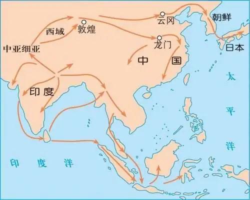 中国佛教艺术的发展,从地理上看,由新疆塔里木盆地到河西走廊,由西北到中原,由北方到南方。