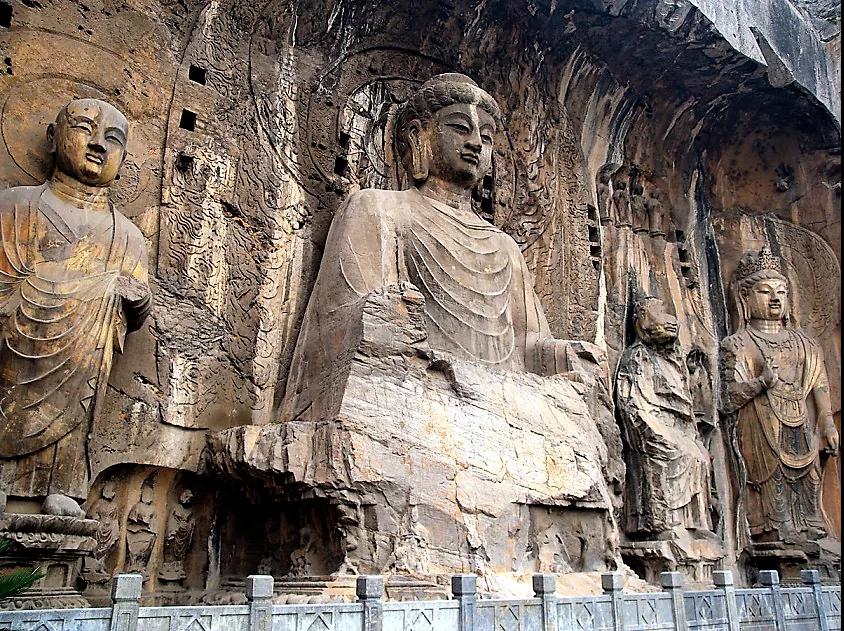 北魏末期,孝文帝迁都洛阳之后始凿龙门石窟,兼具了印度和中亚风格。