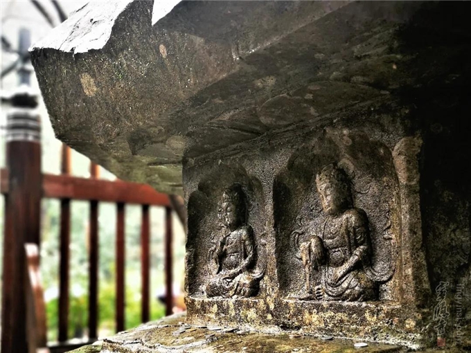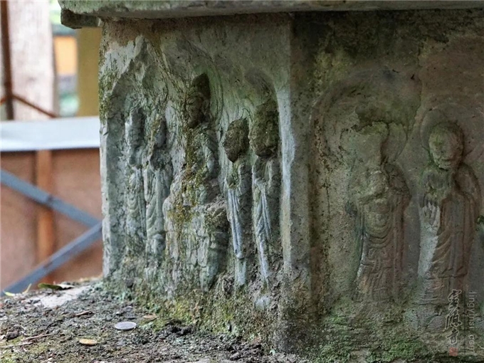 腰檐之上的短柱层 四周雕刻佛陀说法图 栩栩如生