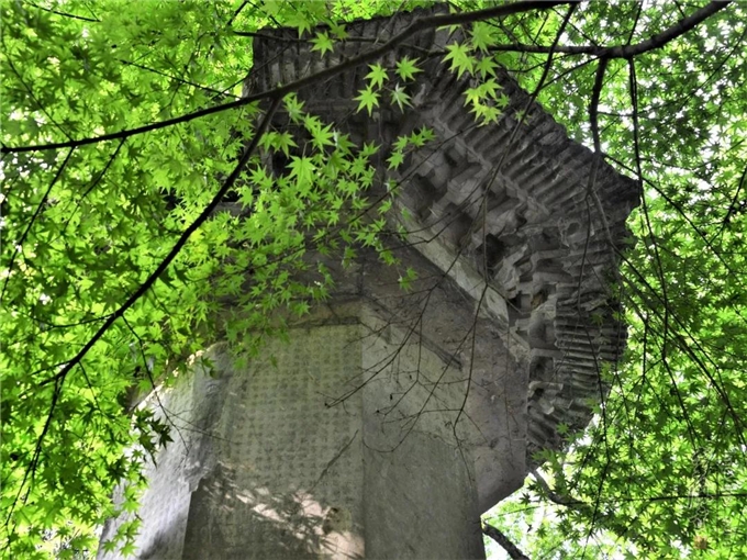 幢身刻满了经文 幢身上部为腰檐