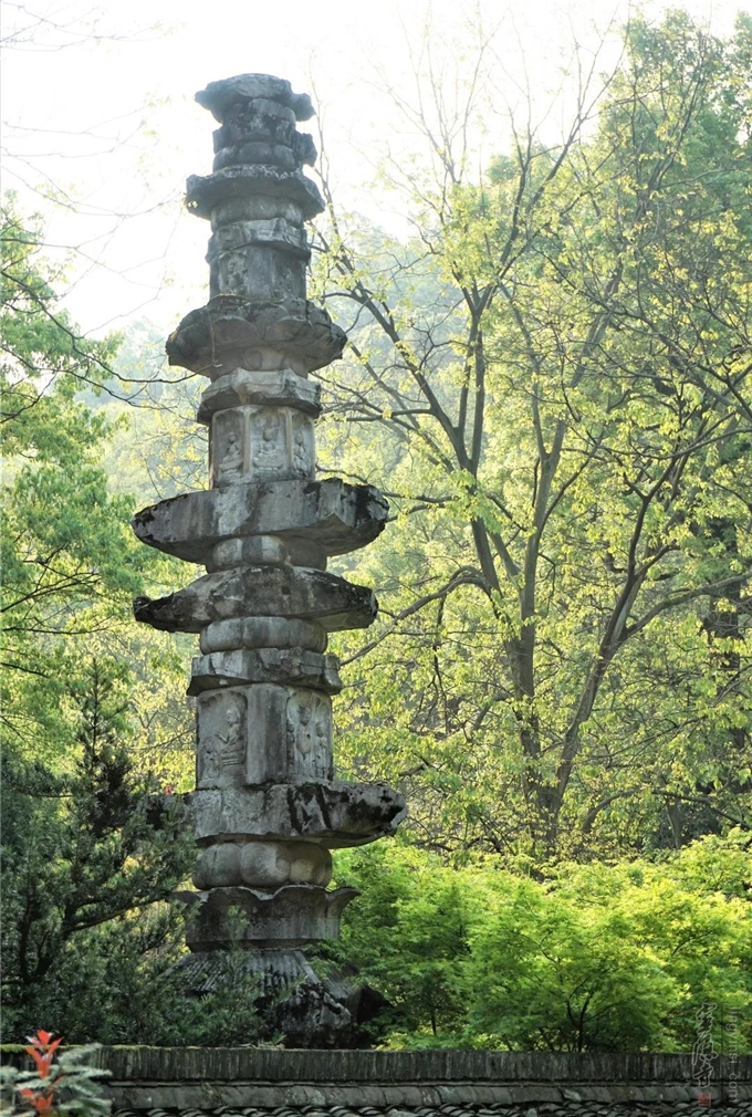 灵隐寺石经幢原有十二层,幢身八面,仿木结构,由灰岩雕刻而成。现虽有残损,仍不失历史沧桑之美。
