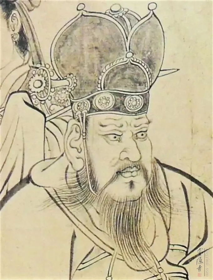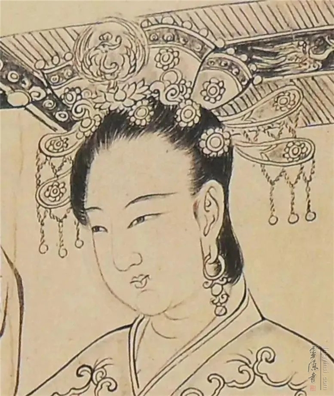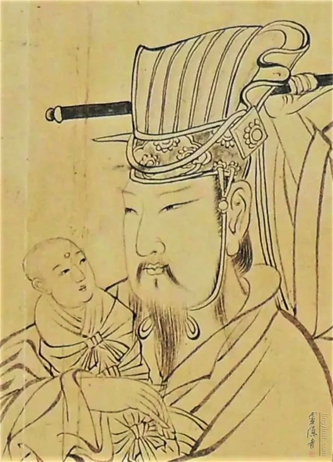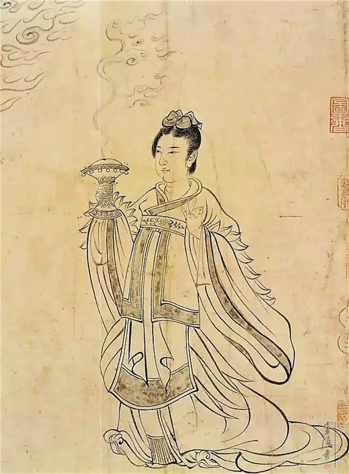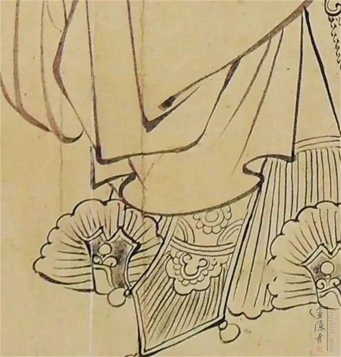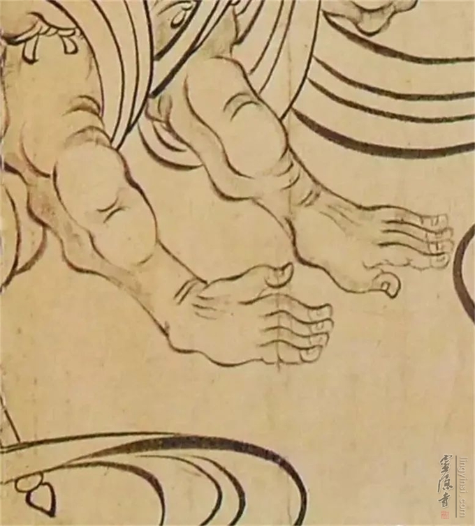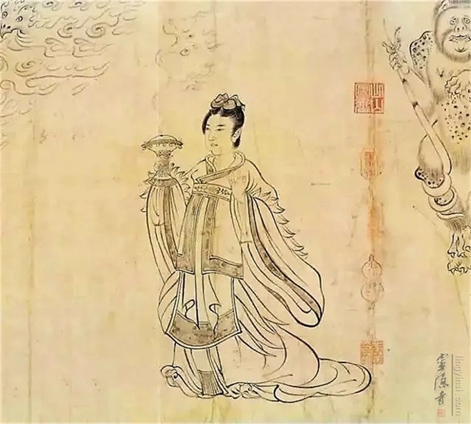 在此画中,除了线的运动外,人物眼神也透视出内在心理的虔诚与中国传统理想君王形象的端庄。他善于使形象达到"守其神,专其一",以致"窃眸欲语",显示了高度技巧与功力。