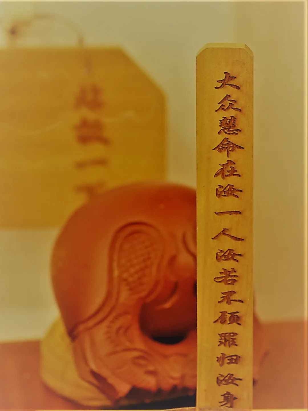 沩仰宗开山祖师沩山灵祐禅师(771—853),曾于开示后学时云:“我百年后去山下作水牯牛。”沩仰宗接人,平和如春风化雨,温良如大众奴仆,钟板样貌为半月形,字句为“天下太平”。